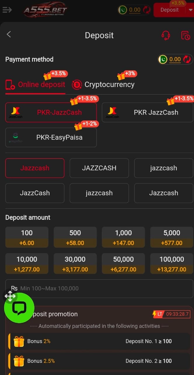 A555 supports local deposit options, making it easier for users to add balance.